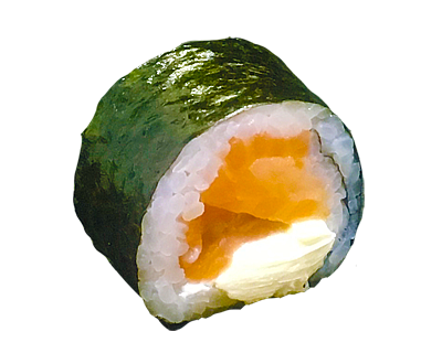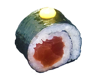 con salmone, tonno* pinna gialla, maionese, cetriolo, kizami wasabi*