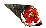 cono di alga nori e riso con tonno rosso^ scottato e marinato, kizami wasabi*